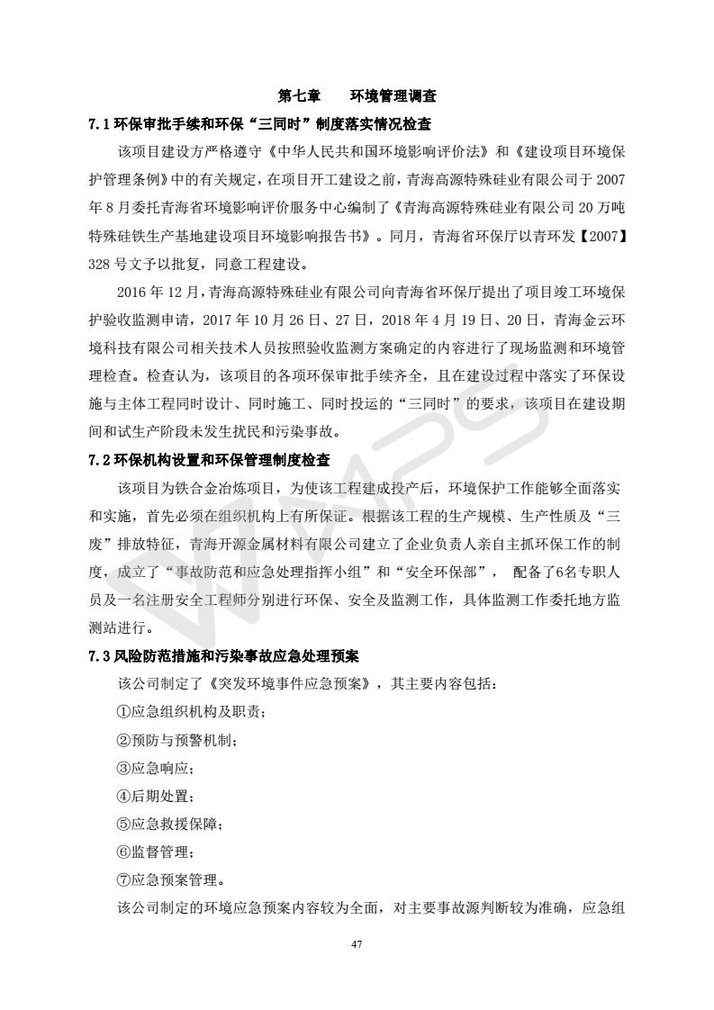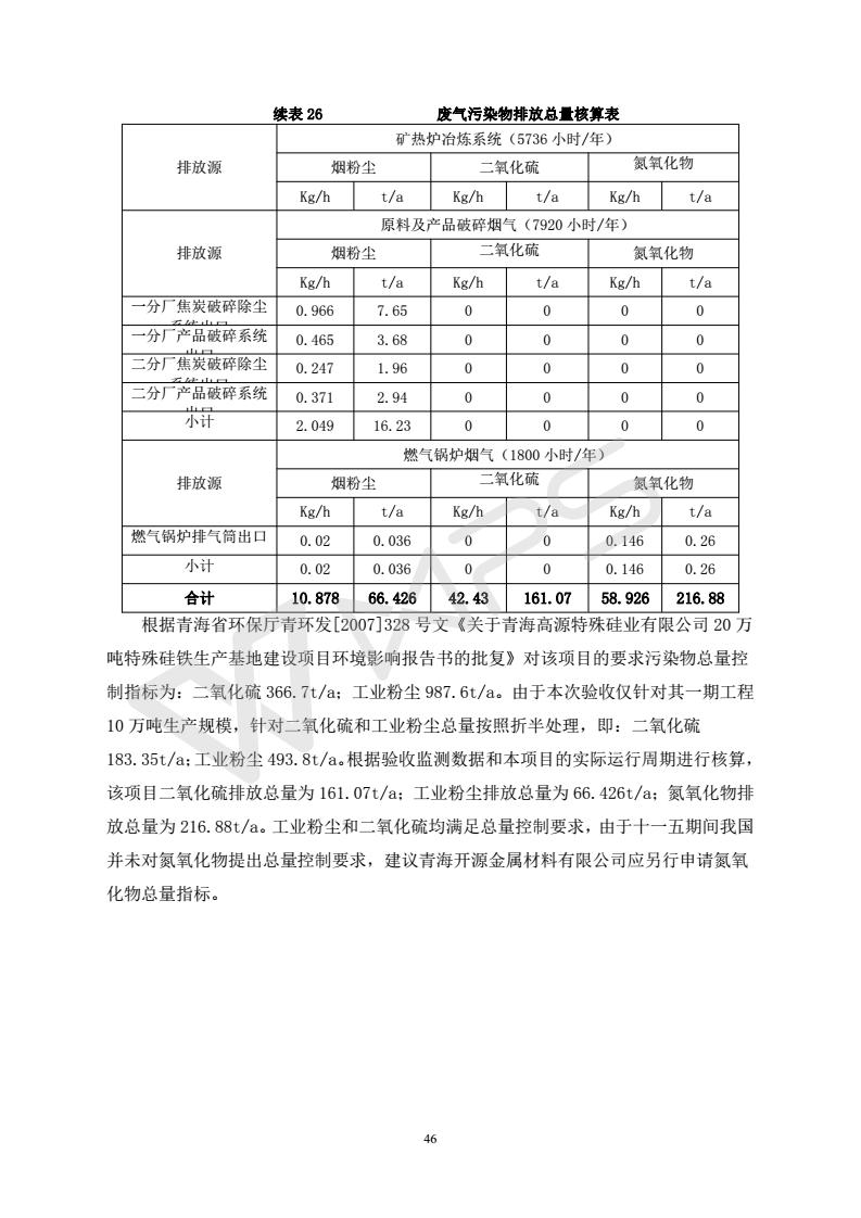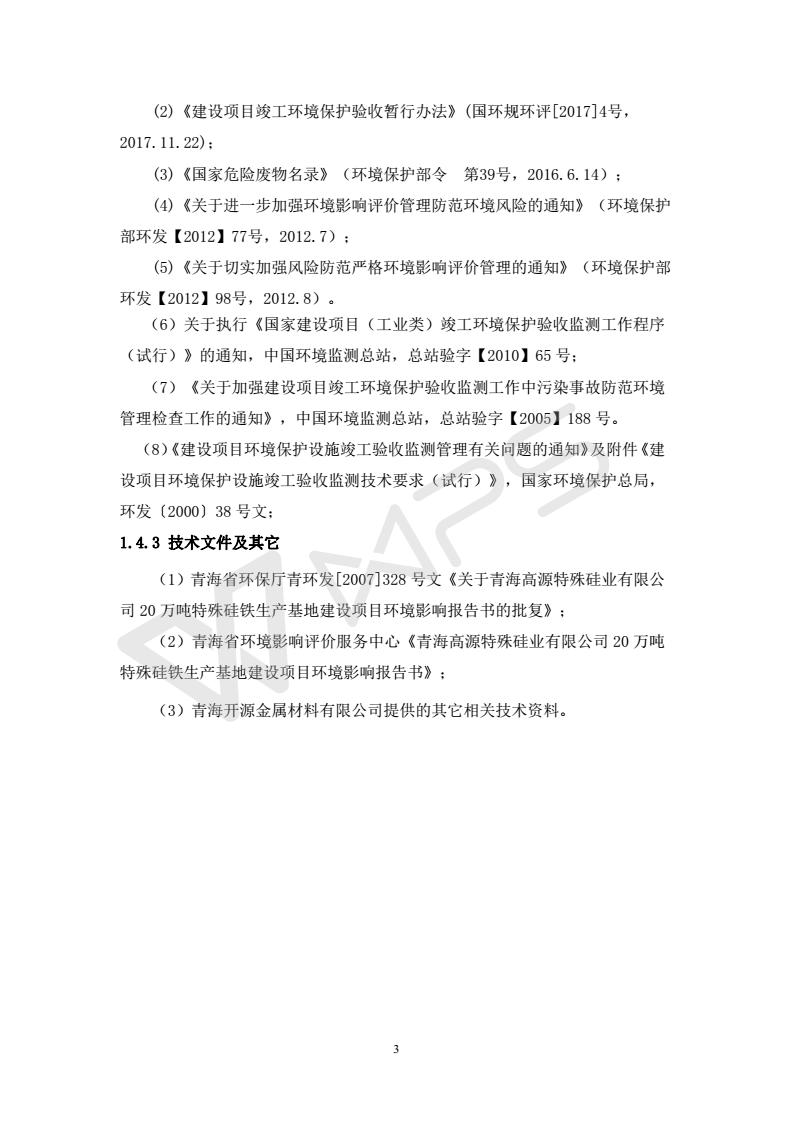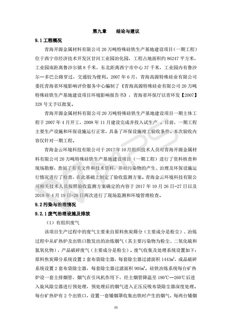 青海開源金屬材料有限公司20萬噸特殊硅鐵生產(chǎn)基地建設項目(一期工程)竣工環(huán)境保護驗收報告書會后修改20180521