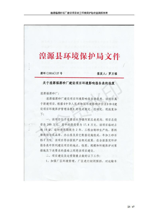 根據(jù)中華人民共和國國務(wù)院令第253號《建設(shè)項(xiàng)目環(huán)境保護(hù)管理?xiàng)l例》(中華人民共和國國務(wù)院令第682號《國務(wù)院關(guān)于修改〈建設(shè)項(xiàng)目環(huán)境保護(hù)管理?xiàng)l例〉的決定》和《建設(shè)項(xiàng)目竣工環(huán)境保護(hù)驗(yàn)收暫行辦法》,嚴(yán)格依照有關(guān)法律法規(guī),建設(shè)項(xiàng)目環(huán)境保護(hù)設(shè)施驗(yàn)收技術(shù)規(guī)范,本項(xiàng)目環(huán)評報(bào)告表和環(huán)保審批部門審批意見以及企業(yè)自行驗(yàn)收相關(guān)要求等對本項(xiàng)目進(jìn)行驗(yàn)收,本項(xiàng)目符合環(huán)保驗(yàn)收條件,可以通過環(huán)保驗(yàn)收。 湟源福砂廠建設(shè)項(xiàng)目竣工環(huán)境保護(hù)驗(yàn)收意見