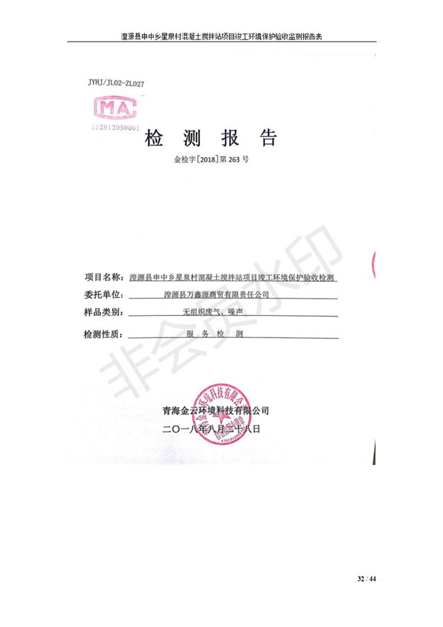 湟源縣申中鄉(xiāng)星泉村混凝土攪拌站項(xiàng)目竣工環(huán)境保護(hù)驗(yàn)收監(jiān)測報(bào)告表公示