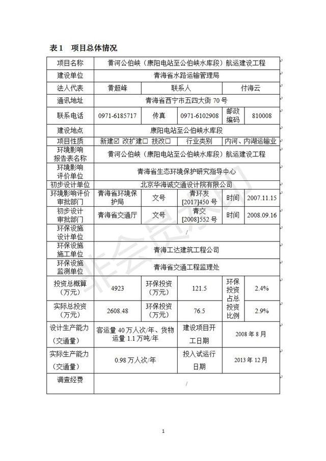 黃河公伯峽(康楊電站至公伯峽水庫段)航運建設(shè)工程竣工環(huán)境保護驗收調(diào)查報告表公示發(fā)布日期:(2018-11-16) 點擊次數(shù):2452 |
