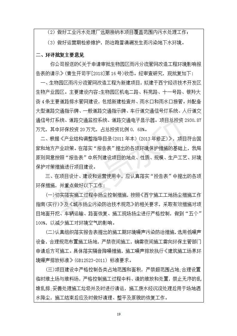 生物園區(qū)雨污分流管網(wǎng)改造工程竣工環(huán)境保護(hù)驗(yàn)收調(diào)查表 公示發(fā)布日期:(2018-12-21) 點(diǎn)擊次數(shù):2754 |