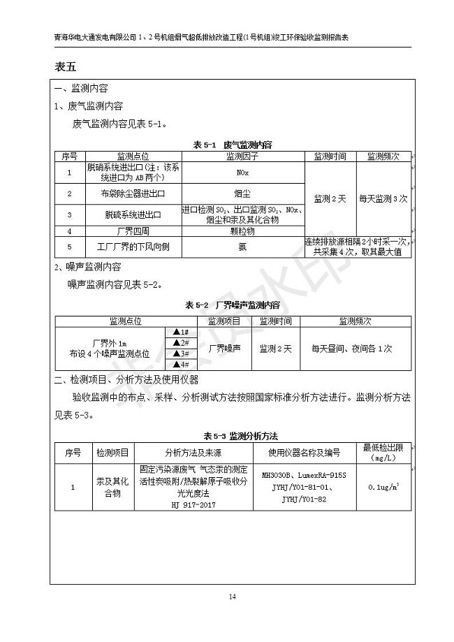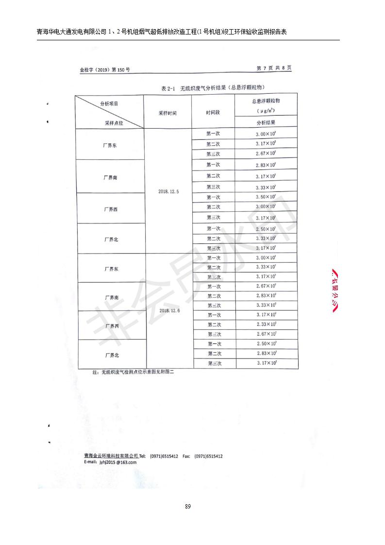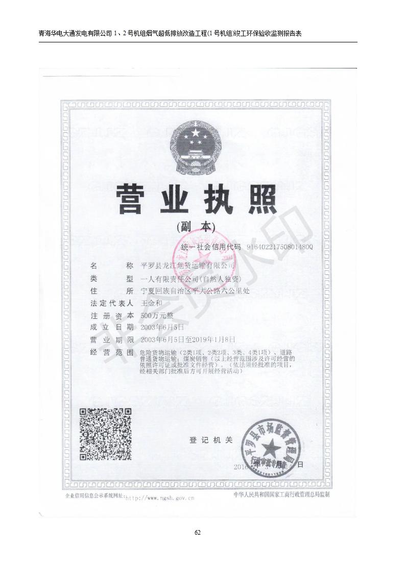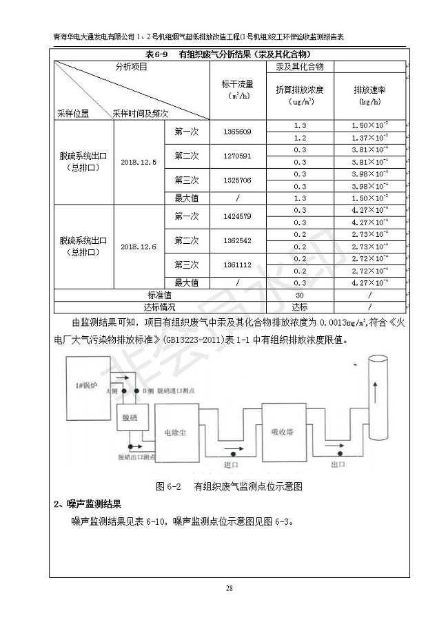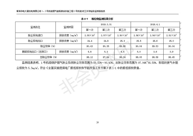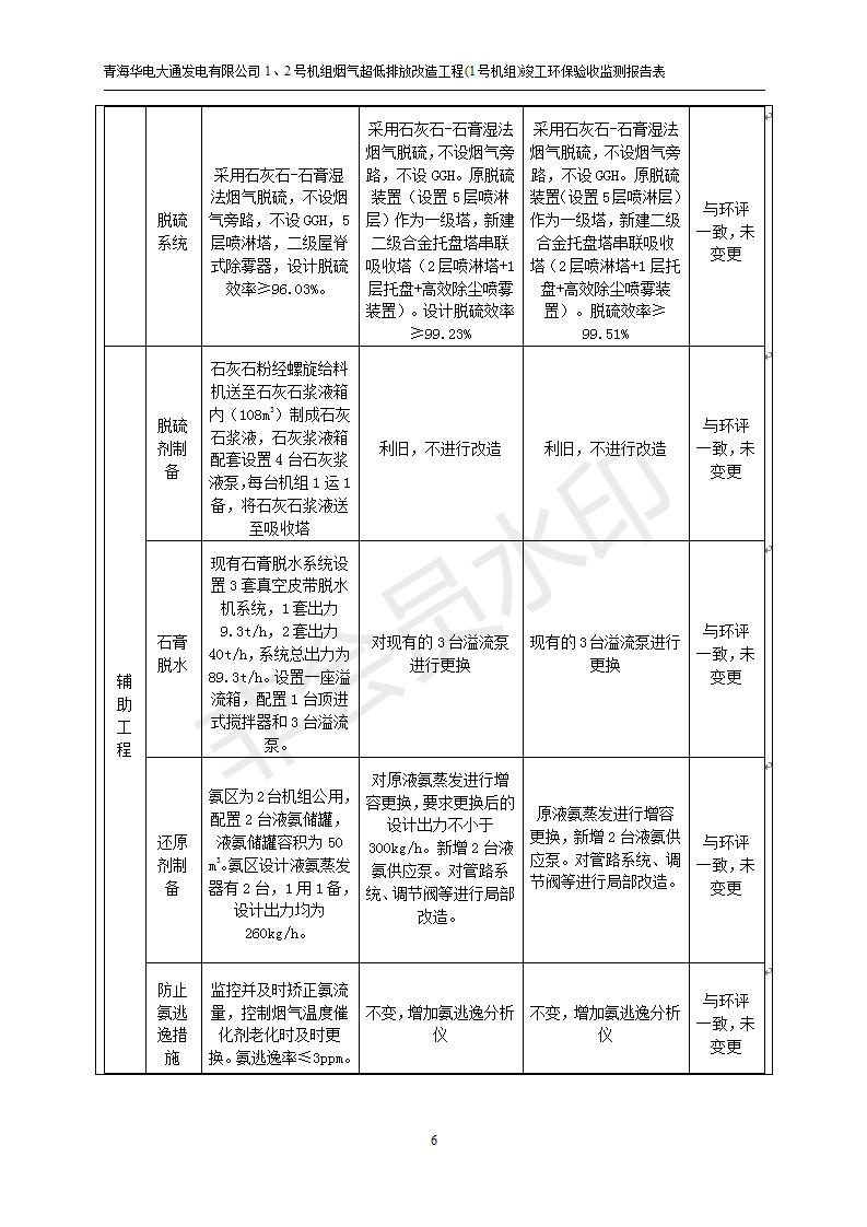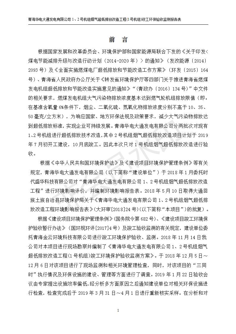 根據(jù)中華人民共和國國務(wù)院令第682號《國務(wù)院關(guān)于修改〈建設(shè)項目環(huán)境保護管理條例〉的決定》和《建設(shè)項目竣工環(huán)境保護驗收暫行辦法》(國務(wù)院令682號),青海華電大通發(fā)電有限公司1、2號機組煙氣超低排放改造工程(1號機組) (包括竣工環(huán)境保護驗收監(jiān)測報告表和驗收意見)公示如下。 一、項目名稱:青海華電大通發(fā)電有限公司1、2號機組煙氣超低排放改造工程(1號機組) 竣工環(huán)境保護驗收監(jiān)測報告表 二、地點:青海省西寧市大通縣寧張公路31公里處 三、建設(shè)單位:青海華電大通發(fā)電有限公司 四、建設(shè)內(nèi)容:1號機組煙氣超低排放改造,1號機組改造內(nèi)容為脫硫系統(tǒng)保留原脫硫裝置作為一級塔,新建二級合金托盤塔串聯(lián)吸收塔;對原“1+2”電袋復(fù)合除塵器的一電場電源進行改造,對布袋除塵器濾袋進行更換;對原脫硝系統(tǒng)選擇性催化還原法(SCR)脫硝工藝加裝備用催化劑,每層催化劑增加聲波吹灰器,優(yōu)化SCR反應(yīng)器入口導(dǎo)流板。 五、聯(lián)系人:張工 六、聯(lián)系電 話:0971-6515411 七、公示時間:二〇一九年二月十三日至二〇一九年三月十二日 公示期間,對上述公示內(nèi)容如有異議,請以書面形式反饋,個人須署真實姓名,單位須加蓋公章。