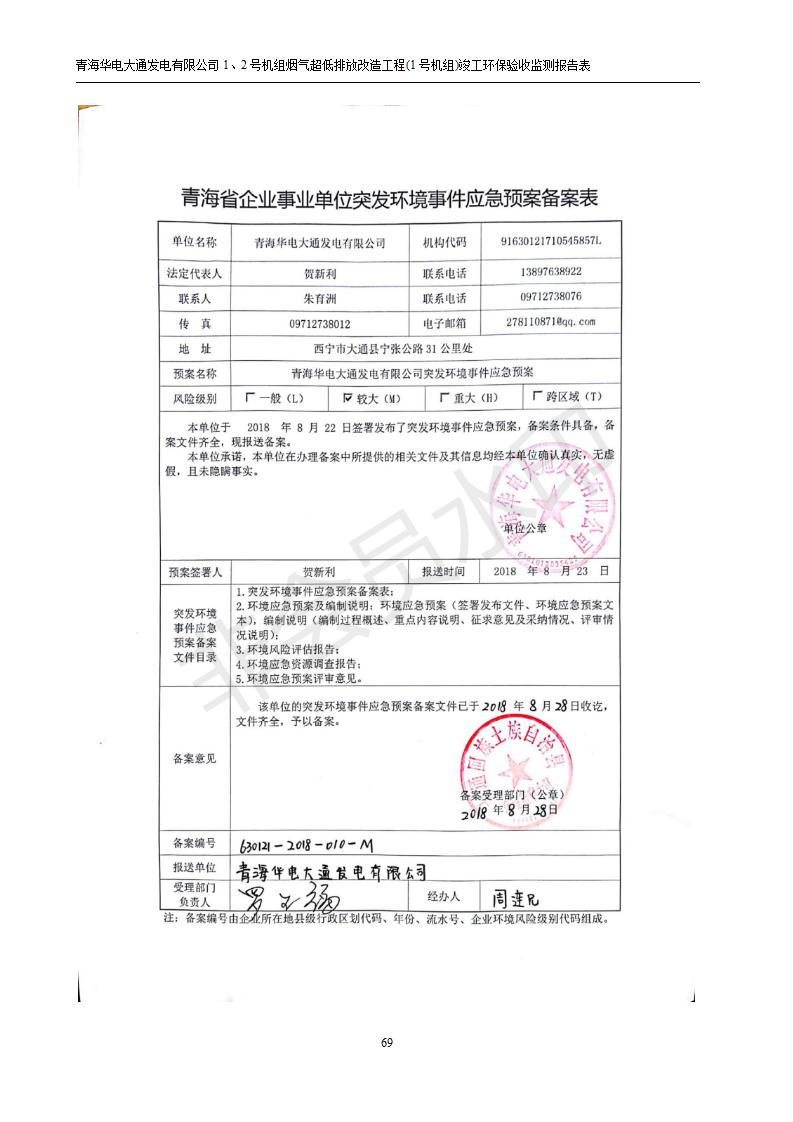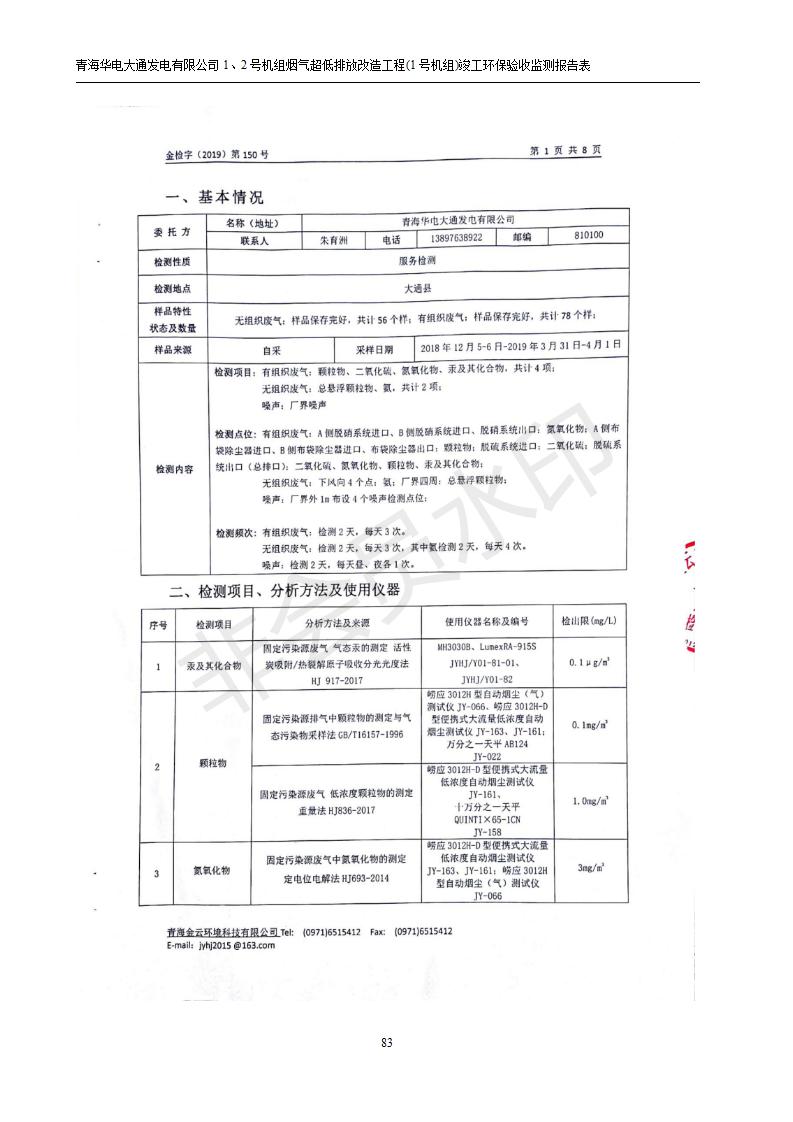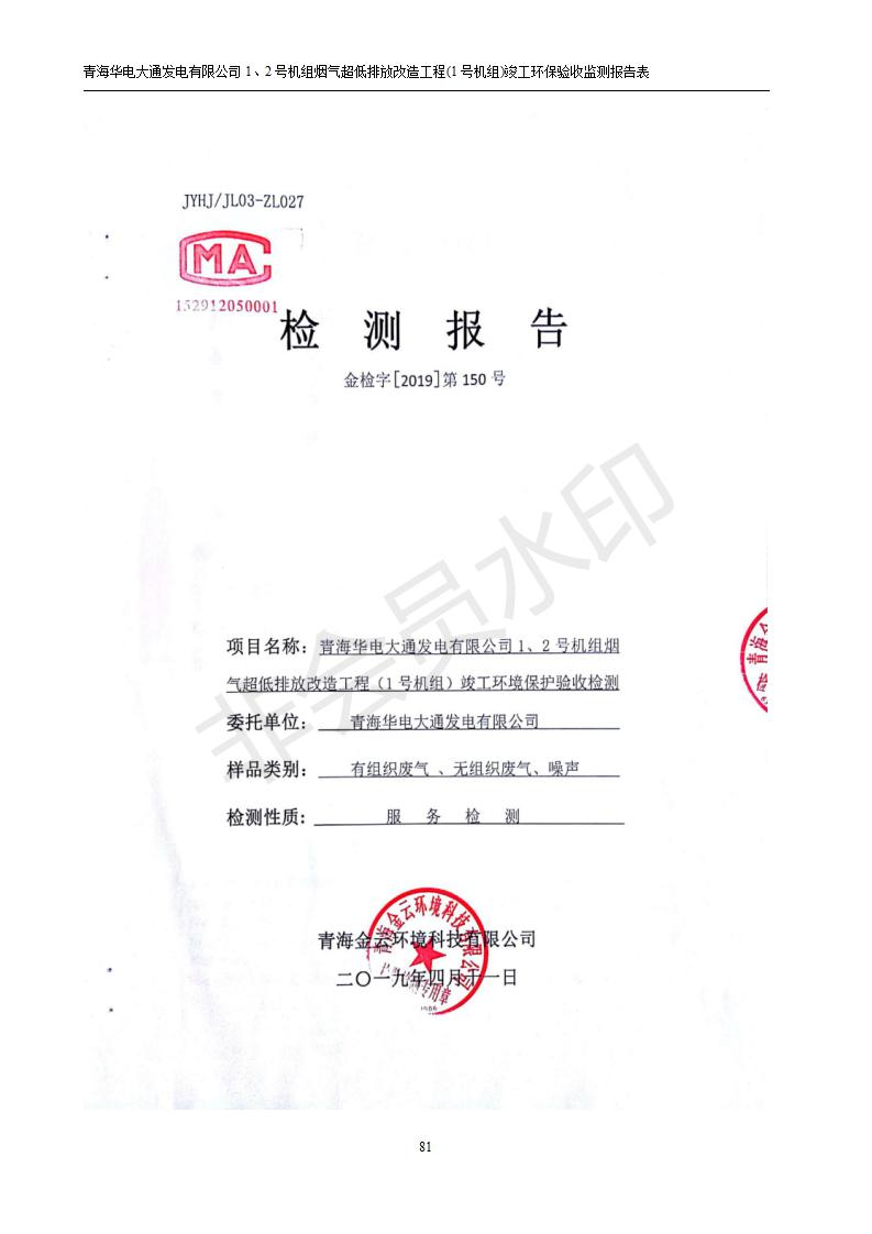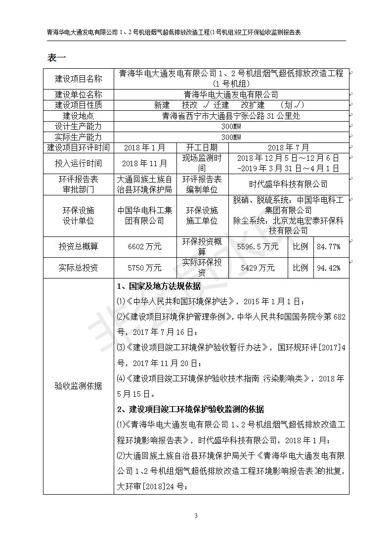 青海華電大通發(fā)電有限公司1、2號機組煙氣超低排放改造工程(1號機組) 竣工環(huán)境保護驗收監(jiān)測報告表公示發(fā)布日期:(2019-2-13) 點擊次數(shù):2576 |