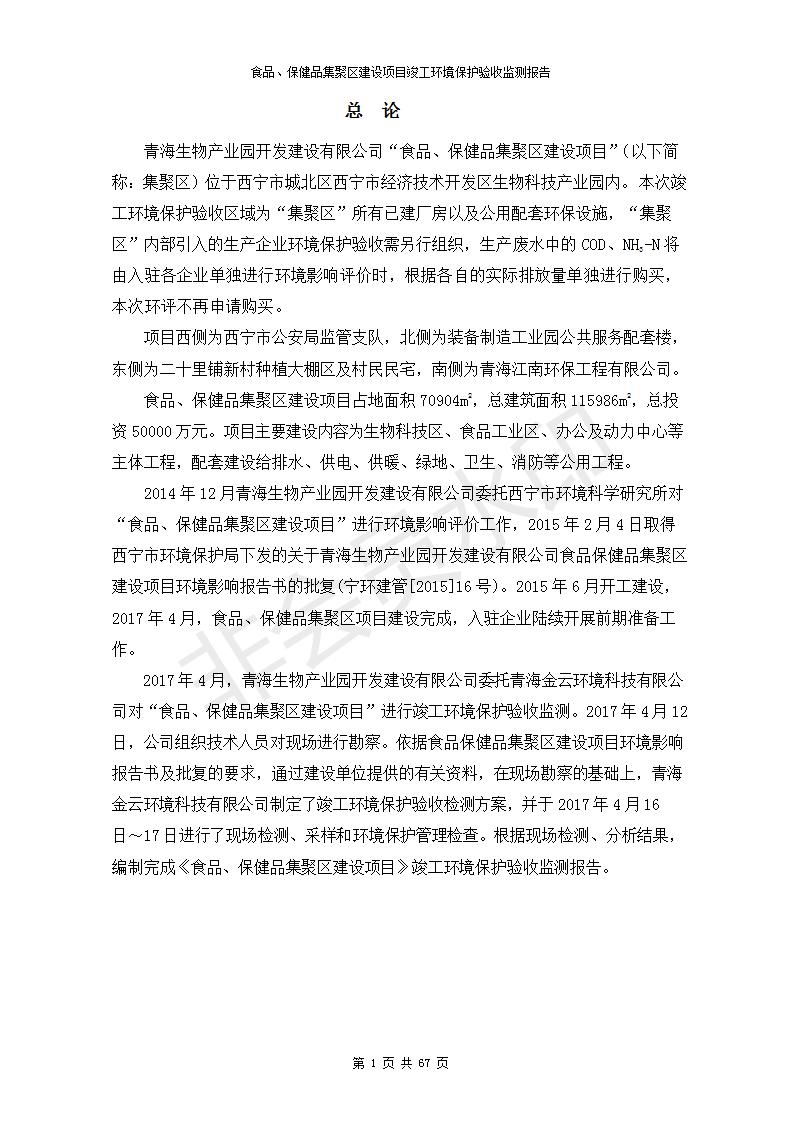 食品、保健品集聚區(qū)建設(shè)項目竣工環(huán)境保護驗收監(jiān)測報告公示發(fā)布日期:(2019-3-11) 點擊次數(shù):2065 |