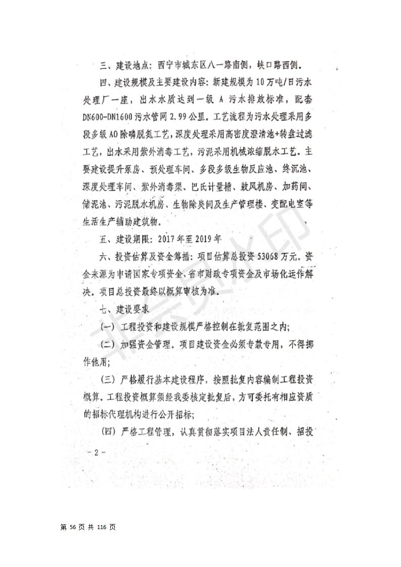 根據(jù)中華人民共和國國務(wù)院令第682號《國務(wù)院關(guān)于修改〈建設(shè)項(xiàng)目環(huán)境保護(hù)管理?xiàng)l例〉的決定》和《建設(shè)項(xiàng)目竣工環(huán)境保護(hù)驗(yàn)收暫行辦法》(國務(wù)院令682號),西寧市第六污水處理廠工程(包括竣工環(huán)境保護(hù)驗(yàn)收監(jiān)測報(bào)告和驗(yàn)收意見)公示如下。 一、項(xiàng)目名稱:西寧市第六污水處理廠工程 二、地點(diǎn):西寧市第六污水處理廠工程建于西寧市八一路南側(cè)(黃河水電開發(fā)有限公司青海分公司空地) 三、建設(shè)單位:西寧市排水開發(fā)建設(shè)有限公司 四、建設(shè)內(nèi)容:處理生活污水規(guī)模為10萬m3/d污水處理廠、輔助設(shè)施、環(huán)保設(shè)施等。 五、聯(lián)系人:張工 六、聯(lián)系電話:0971-6515411 七、公示時(shí)間:二〇一九年七月十一日至二〇一九年八月七日 公示期間,對上述公示內(nèi)容如有異議,請以書面形式反饋,個人須署真實(shí)姓名,單位須加蓋公章。