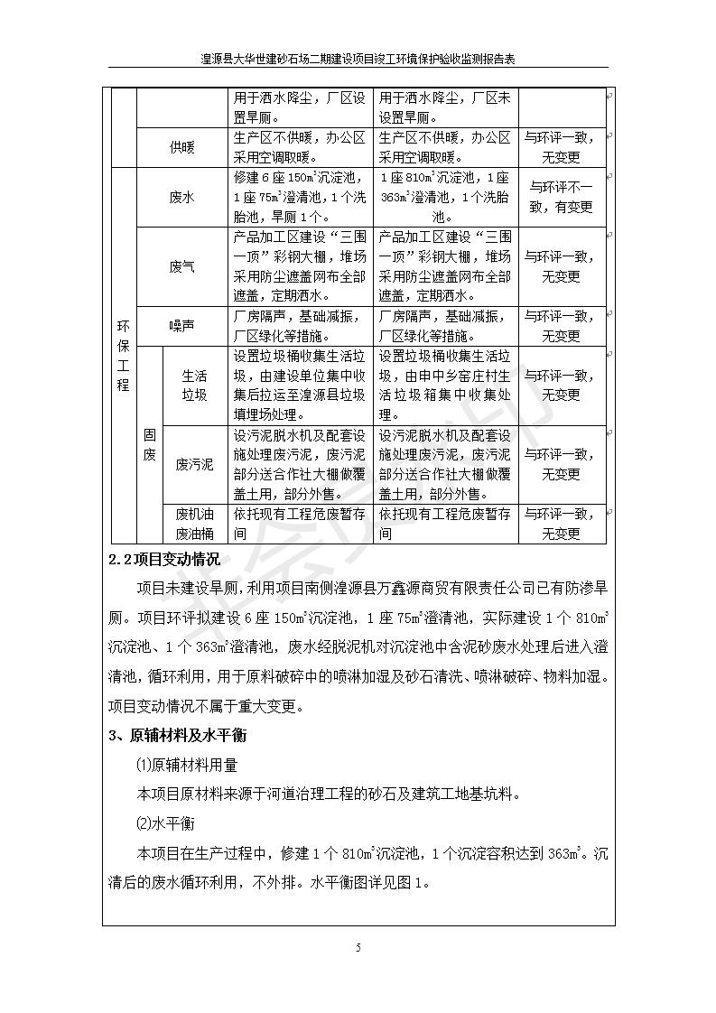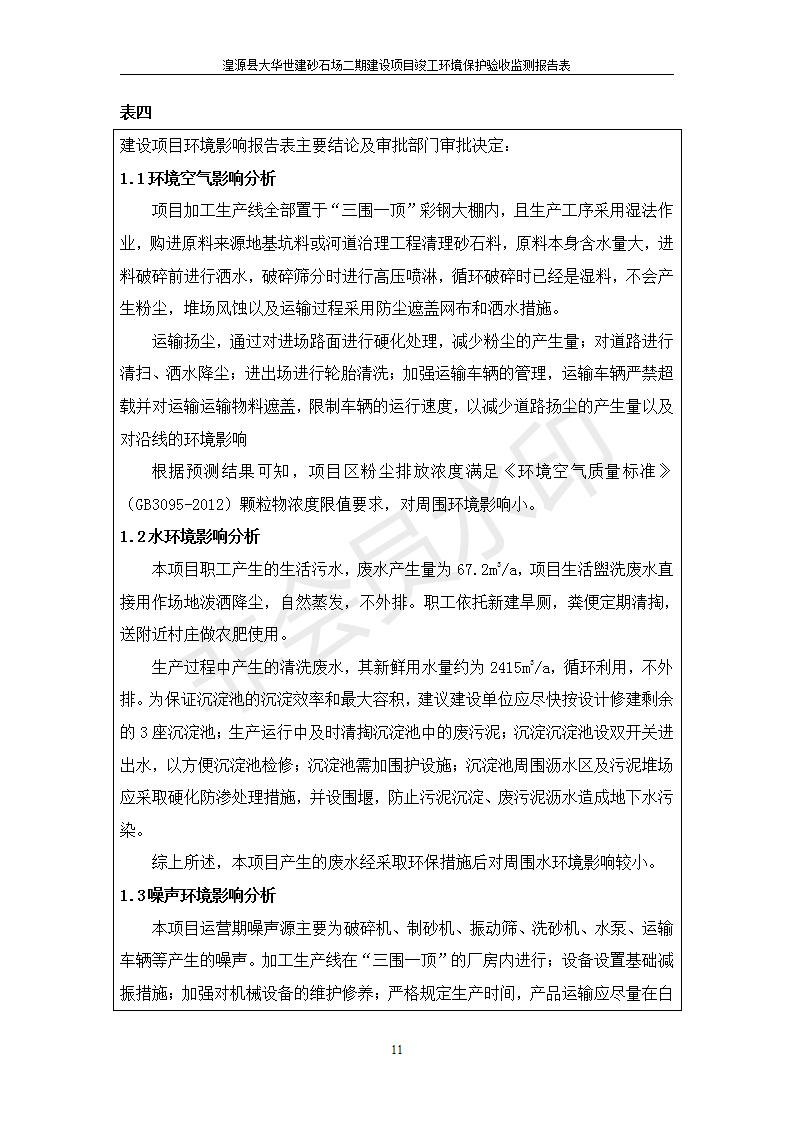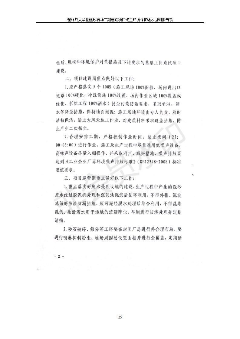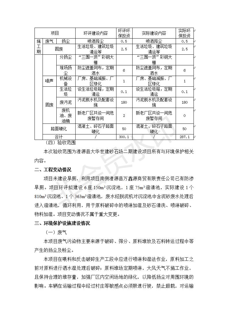 根據(jù)中華人民共和國國務(wù)院令第682號(hào)《國務(wù)院關(guān)于修改〈建設(shè)項(xiàng)目環(huán)境保護(hù)管理?xiàng)l例〉的決定》和《建設(shè)項(xiàng)目竣工環(huán)境保護(hù)驗(yàn)收暫行辦法》(國務(wù)院令682號(hào)),湟源大華世建砂石場(chǎng)湟源縣大華世建砂石場(chǎng)二期建設(shè)項(xiàng)目(包括竣工環(huán)境保護(hù)驗(yàn)收監(jiān)測(cè)報(bào)告表和驗(yàn)收意見)公示如下。 一、項(xiàng)目名稱:湟源縣大華世建砂石場(chǎng)二期建設(shè)項(xiàng)目 二、地點(diǎn):湟源縣申中鄉(xiāng)窯莊村沙崗大小灣 三、建設(shè)單位:湟源大華世建砂石場(chǎng) 四、建設(shè)內(nèi)容:項(xiàng)目主要建設(shè)砂石料產(chǎn)品加工生產(chǎn)區(qū)、原料堆場(chǎng)、產(chǎn)品堆場(chǎng)、辦公區(qū)等。五、聯(lián)系人:張工 六、聯(lián)系電 話:0971-6515411 七、公示時(shí)間:二〇一九年七月二十五日至二〇一九年八月二十一日公示期間,對(duì)上述公示內(nèi)容如有異議,請(qǐng)以書面形式反饋,個(gè)人須署真實(shí)姓名,單位須加蓋公章。
