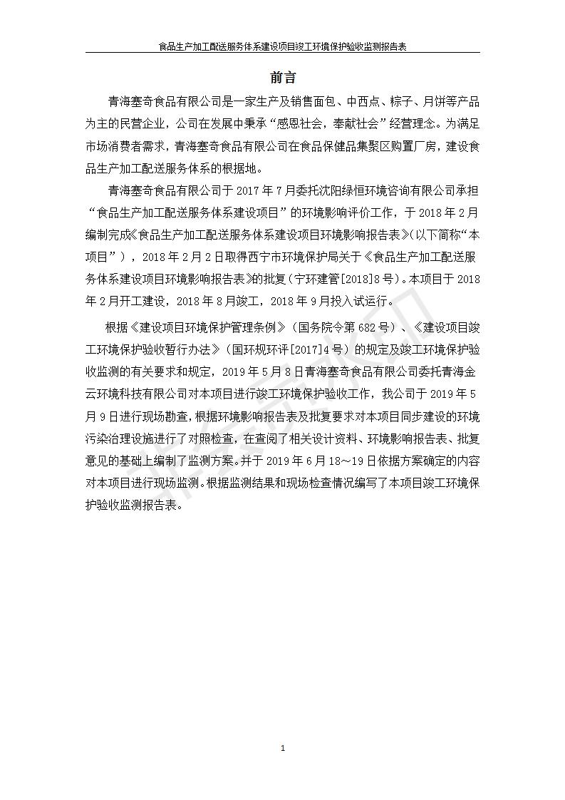 根據(jù)中華人民共和國國務院令第682號《國務院關(guān)于修改〈建設項目環(huán)境保護管理條例〉的決定》和《建設項目竣工環(huán)境保護驗收暫行辦法》(國務院令682號),食品生產(chǎn)加工配送服務體系建設項目(包括竣工環(huán)境保護驗收監(jiān)測報告表和驗收意見)公示如下。 一、項目名稱:食品生產(chǎn)加工配送服務體系建設項目 二、地點:西寧市城北區(qū)生物園區(qū)迎新路5號食品保健品集聚區(qū)1號樓 六、聯(lián)系電 話:0971-6515411 七、公示時間:二〇一九年九月二十日至二〇一九年十月二十二日 公示期間,對上述公示內(nèi)容如有異議,請以書面形式反饋,個人須署真實姓名,單位須加蓋公章。