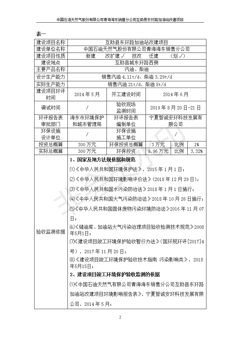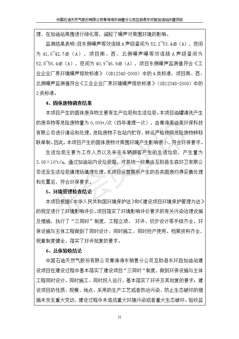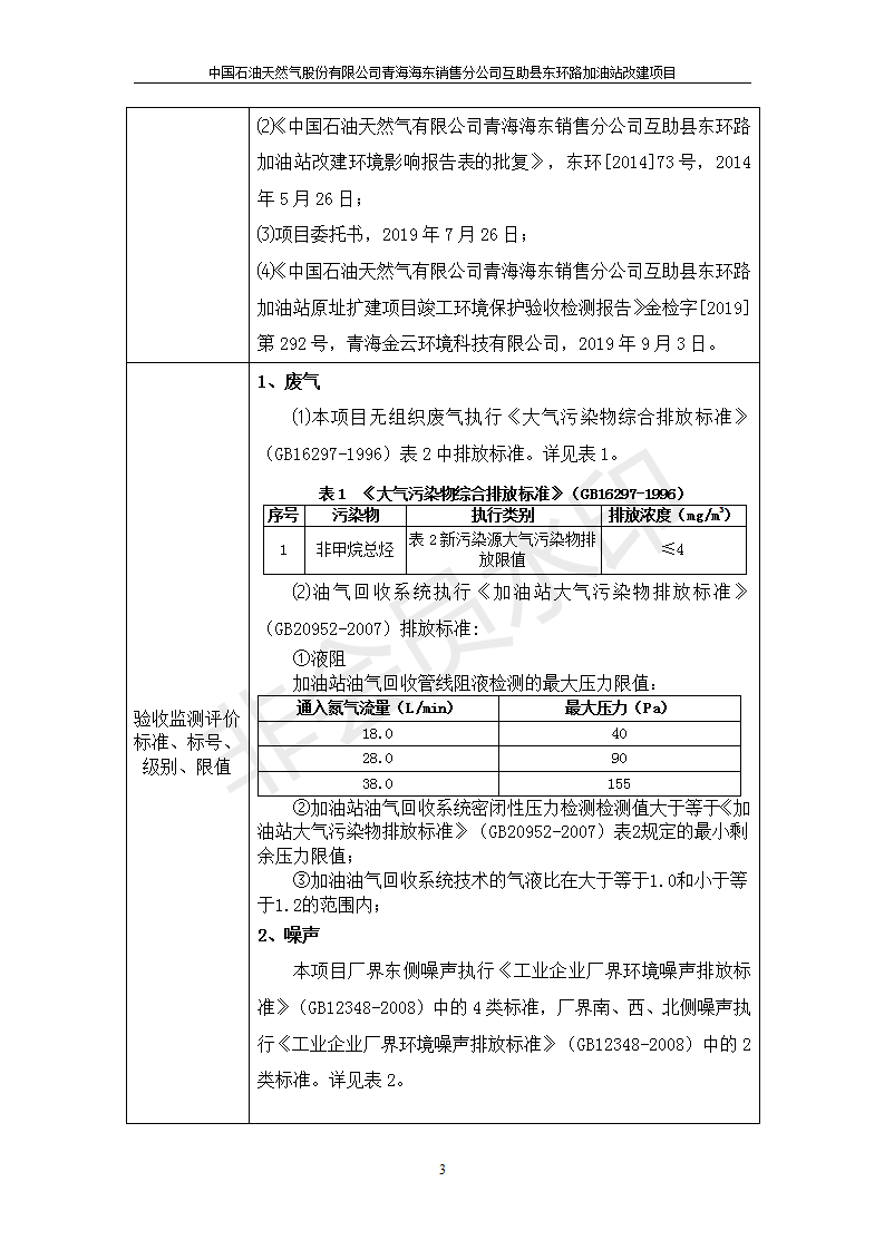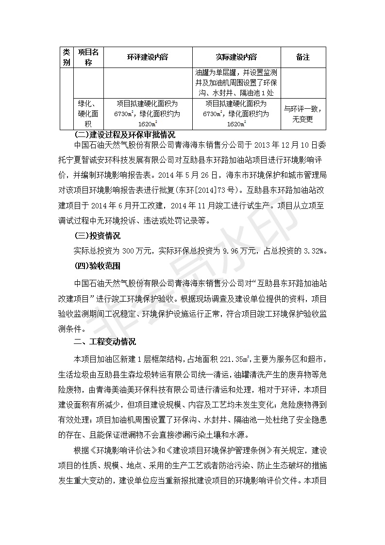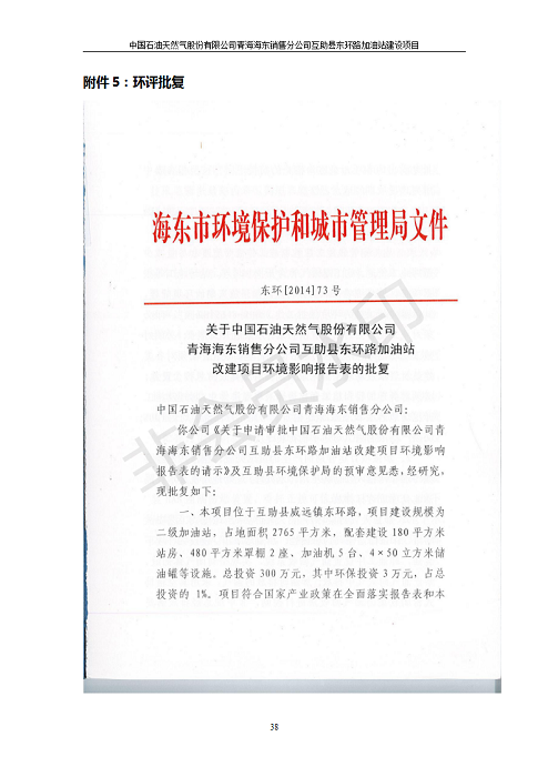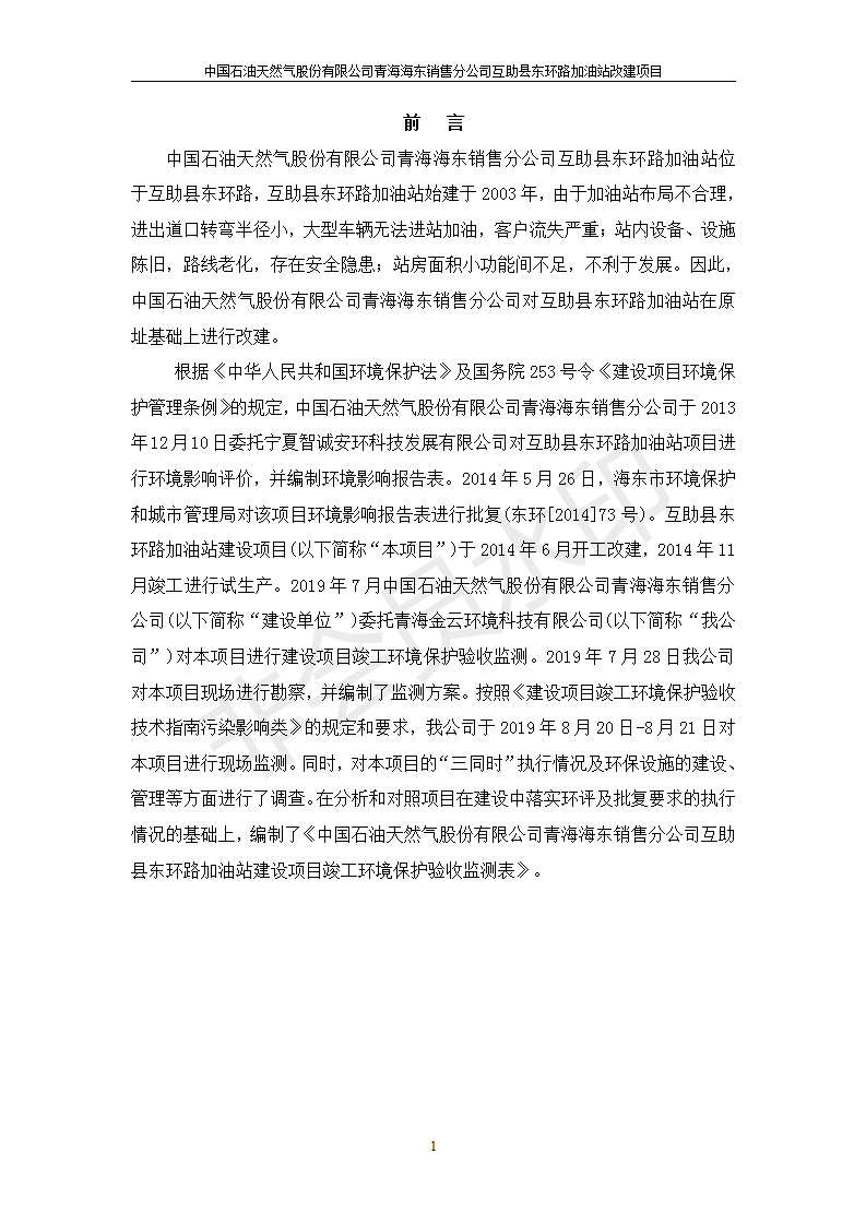 根據(jù)中華人民共和國(guó)國(guó)務(wù)院令第682號(hào)《國(guó)務(wù)院關(guān)于修改〈建設(shè)項(xiàng)目環(huán)境保護(hù)管理?xiàng)l例〉的決定》和《建設(shè)項(xiàng)目竣工環(huán)境保護(hù)驗(yàn)收暫行辦法》(國(guó)務(wù)院令682號(hào)),互助縣東環(huán)路加油站改建項(xiàng)目(包括竣工環(huán)境保護(hù)驗(yàn)收監(jiān)測(cè)報(bào)告表和驗(yàn)收意見(jiàn))公示如下。 一、項(xiàng)目名稱:互助縣東環(huán)路加油站改建項(xiàng)目 二、地點(diǎn):青海省海東市互助縣東環(huán)路 六、聯(lián)系電話:0971-6515411 七、公示時(shí)間:二〇一九年九月二十七日至二〇一九年十月二十九日 公示期間,對(duì)上述公示內(nèi)容如有異議,請(qǐng)以書(shū)面形式反饋,個(gè)人須署真實(shí)姓名,單位須加蓋公章。