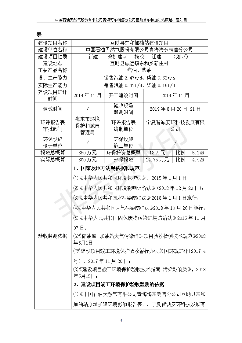 互助縣東和加油站原址擴(kuò)建項(xiàng)目 竣工環(huán)境保護(hù)驗(yàn)收監(jiān)測(cè)報(bào)告表公示發(fā)布日期:(2019-9-27) 點(diǎn)擊次數(shù):2401 |