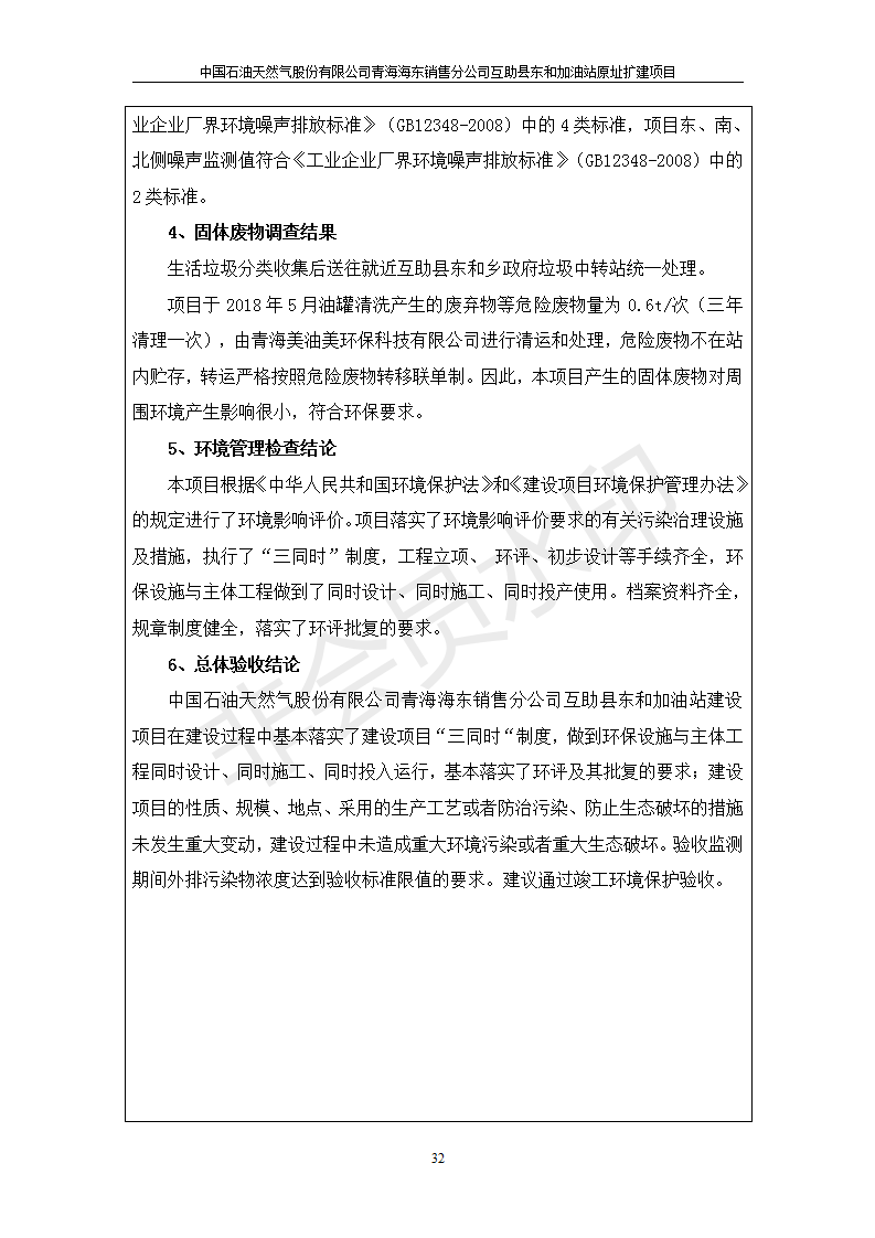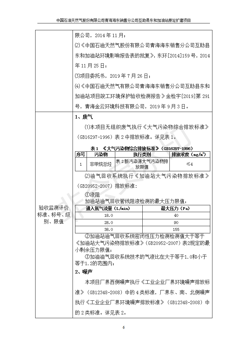 根據(jù)中華人民共和國(guó)國(guó)務(wù)院令第682號(hào)《國(guó)務(wù)院關(guān)于修改〈建設(shè)項(xiàng)目環(huán)境保護(hù)管理?xiàng)l例〉的決定》和《建設(shè)項(xiàng)目竣工環(huán)境保護(hù)驗(yàn)收暫行辦法》(國(guó)務(wù)院令682號(hào)),互助縣東和加油站原址擴(kuò)建項(xiàng)目(包括竣工環(huán)境保護(hù)驗(yàn)收監(jiān)測(cè)報(bào)告表和驗(yàn)收意見(jiàn))公示如下。 一、項(xiàng)目名稱:互助縣東和加油站原址擴(kuò)建項(xiàng)目 二、地點(diǎn):互助縣威遠(yuǎn)鎮(zhèn)東和鄉(xiāng)新莊村 六、聯(lián)系電話:0971-6515411 七、公示時(shí)間:二〇一九年九月二十七日至二〇一九年十月二十九日 公示期間,對(duì)上述公示內(nèi)容如有異議,請(qǐng)以書(shū)面形式反饋,個(gè)人須署真實(shí)姓名,單位須加蓋公章。