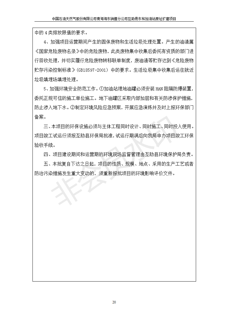 | 上一篇:糧油、食品、飼料等加工綜合園區(qū)項(xiàng)目竣工環(huán)境保護(hù)驗(yàn)收監(jiān)測(cè)報(bào)告表公示 | 下一篇:互助縣東環(huán)路加油站改建項(xiàng)目竣工環(huán)境保護(hù)驗(yàn)收監(jiān)測(cè)報(bào)告表公示 |