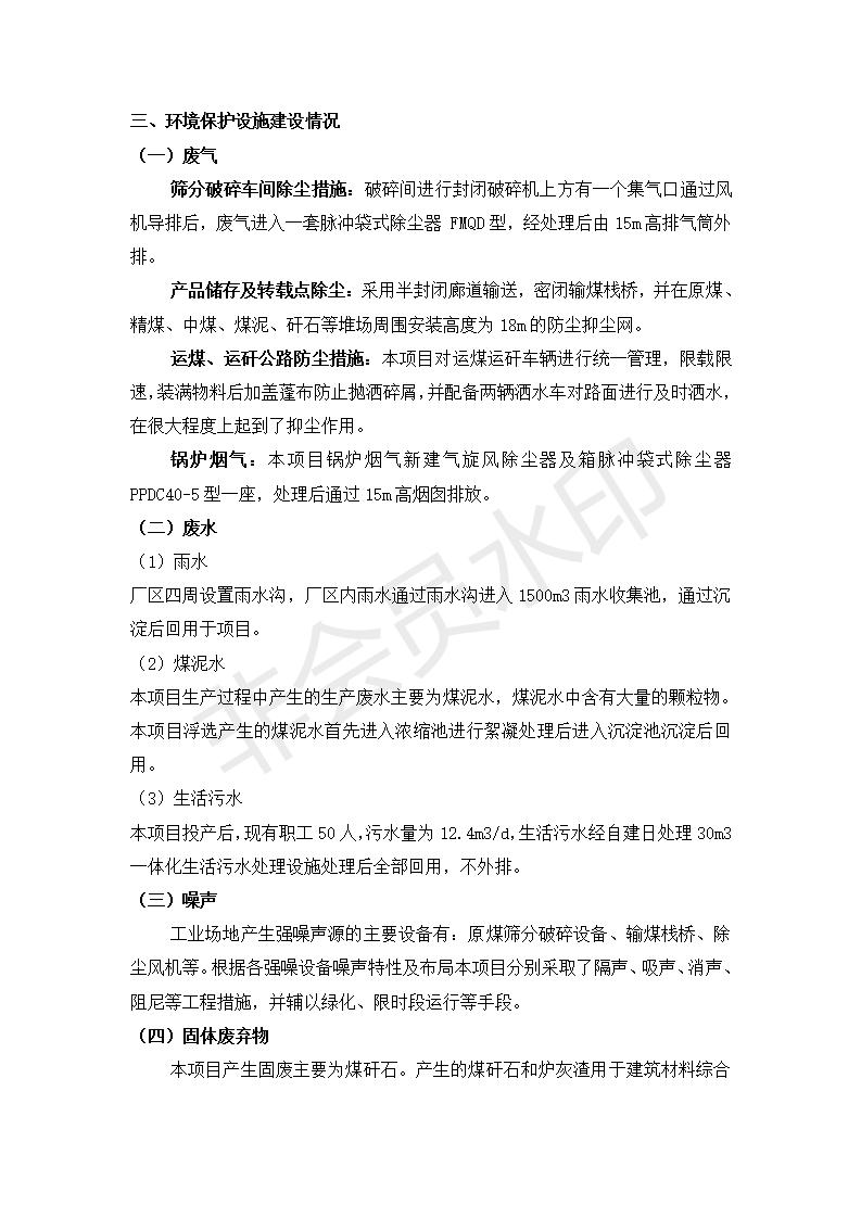 根據(jù)中華人民共和國(guó)國(guó)務(wù)院令第682號(hào)《國(guó)務(wù)院關(guān)于修改〈建設(shè)項(xiàng)目環(huán)境保護(hù)管理?xiàng)l例〉的決定》和《建設(shè)項(xiàng)目竣工環(huán)境保護(hù)驗(yàn)收暫行辦法》(國(guó)務(wù)院令682號(hào)),青海義盛選煤有限公司熱水選煤項(xiàng)目(階段性)竣工環(huán)境保護(hù)驗(yàn)收監(jiān)測(cè)報(bào)告(包括竣工環(huán)境保護(hù)驗(yàn)收監(jiān)測(cè)報(bào)告和驗(yàn)收意見(jiàn))公示如下。 一、項(xiàng)目名稱:青海義盛選煤有限公司熱水選煤項(xiàng)目(階段性) 二、地點(diǎn):剛察縣熱水鎮(zhèn) 此外還包括公用工程系統(tǒng)、消防系統(tǒng)及輔助生產(chǎn)設(shè)施等。 五、聯(lián)系人:張工六、聯(lián)系電話:0971-6515411 七、公示時(shí)間:二〇一九年十一月十二日至二〇一九年十二月九日