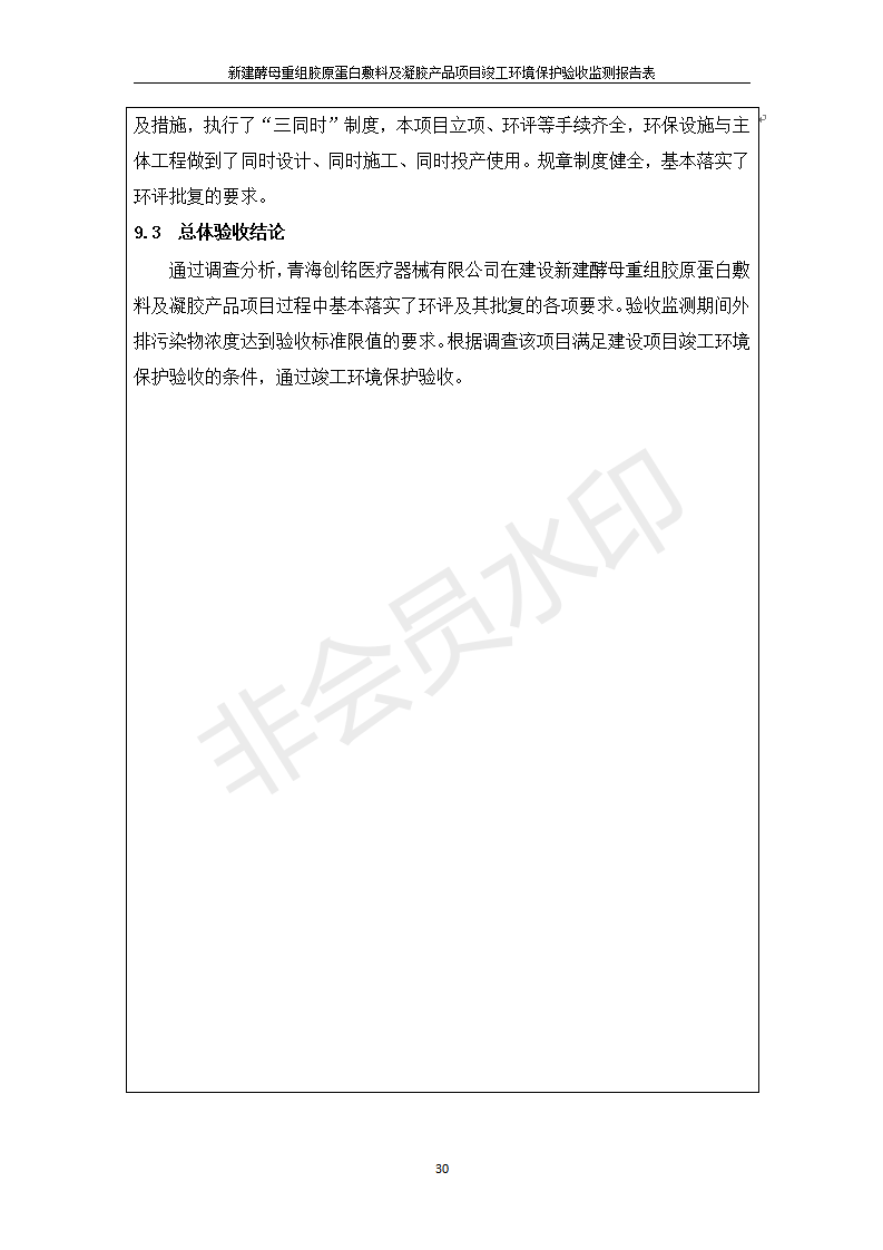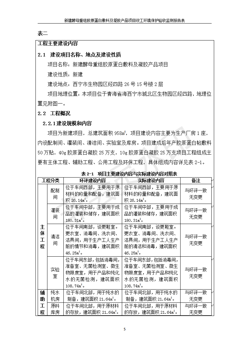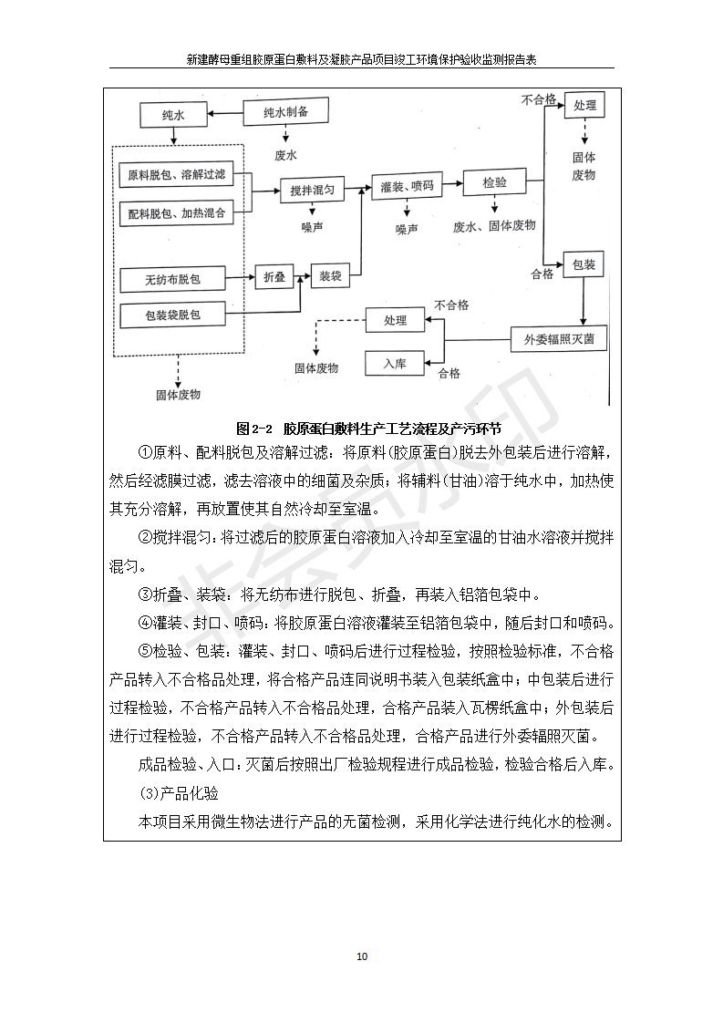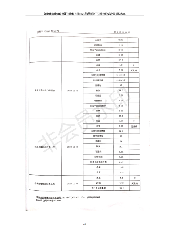 根據(jù)中華人民共和國國務(wù)院令第682號《國務(wù)院關(guān)于修改〈建設(shè)項目環(huán)境保護管理條例〉的決定》和《建設(shè)項目竣工環(huán)境保護驗收暫行辦法》(國務(wù)院令682號),新建酵母重組膠原蛋白敷料及凝膠產(chǎn)品項目(包括竣工環(huán)境保護驗收監(jiān)測報告表和驗收意見)公示如下。 一、項目名稱:新建酵母重組膠原蛋白敷料及凝膠產(chǎn)品項目 二、地點:西寧市生物園區(qū)經(jīng)四路26號15號樓2層 五、聯(lián)系人:董繼風(fēng) 六、聯(lián)系電話:18606125050 七、公示時間:二〇二〇年一月十三日至二〇二〇年二月十二日 公示期間,對上述公示內(nèi)容如有異議,請以書面形式反饋,個人須署真實姓名,單位須加蓋公章。