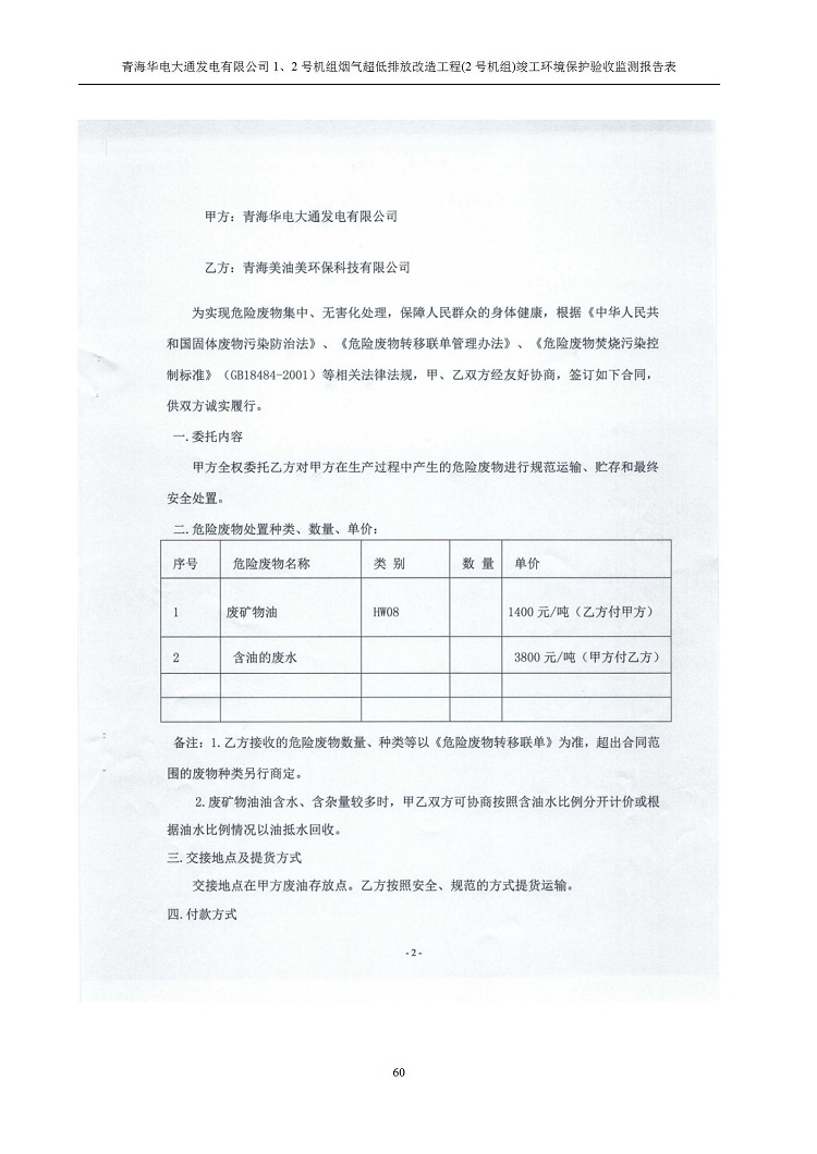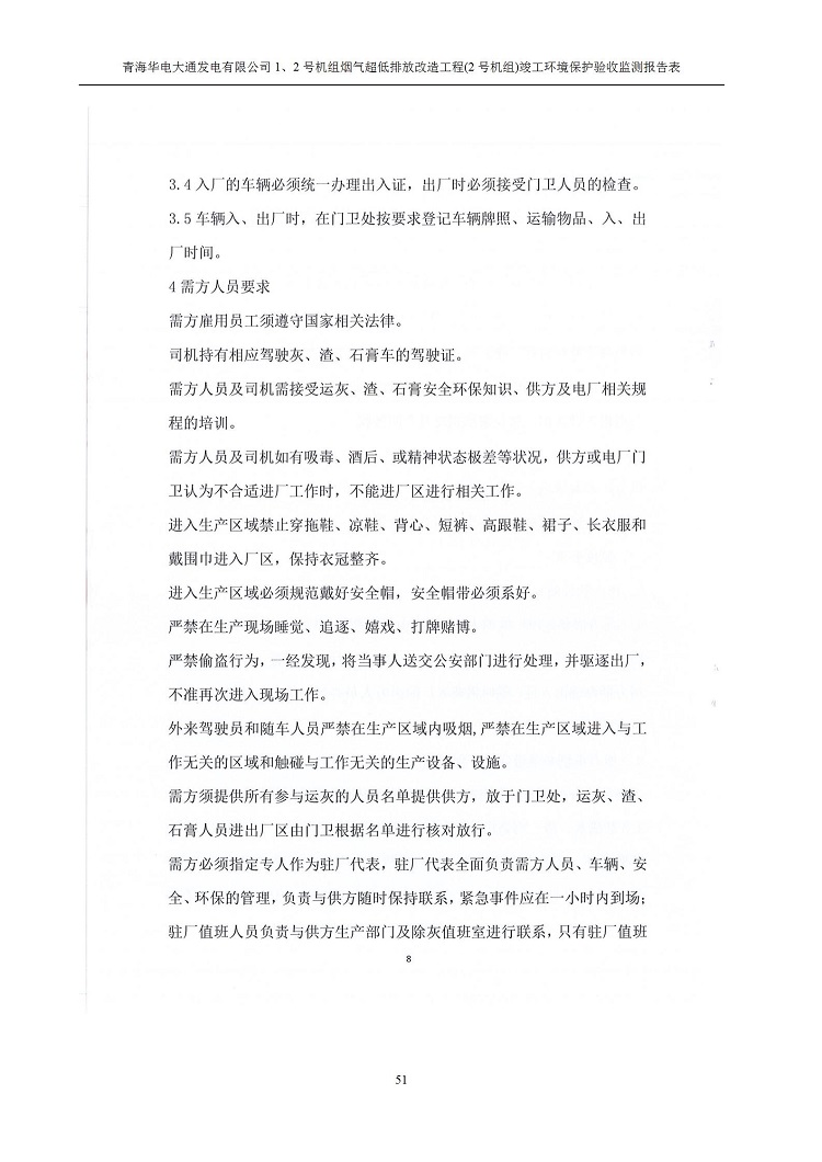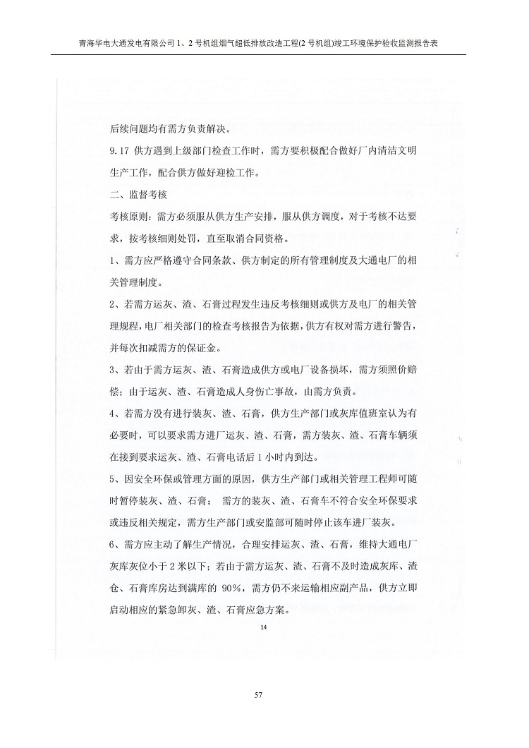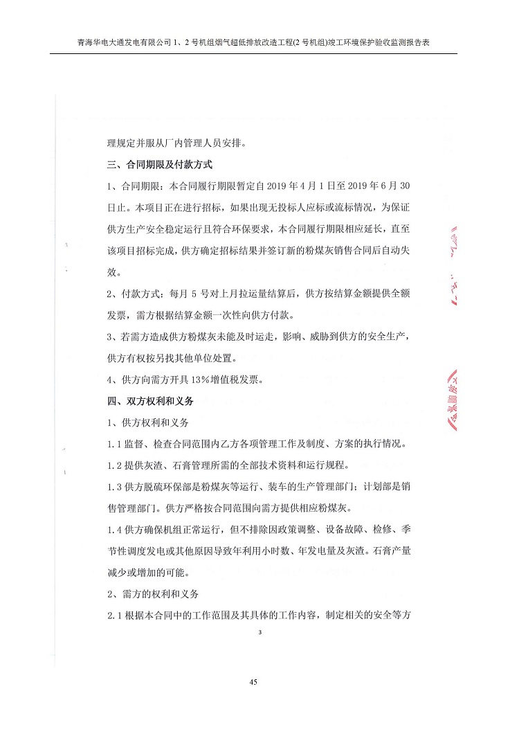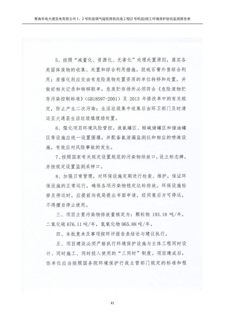 根據(jù)中華人民共和國國務(wù)院令第682號《國務(wù)院關(guān)于修改〈建設(shè)項目環(huán)境保護管理條例〉的決定》和《建設(shè)項目竣工環(huán)境保護驗收暫行辦法》(國務(wù)院令682號),青海華電大通發(fā)電有限公司1、2號機組煙氣超低排放改造工程(2號機組) (包括竣工環(huán)境保護驗收監(jiān)測報告表和驗收意見)公示如下。 一、項目名稱:青海華電大通發(fā)電有限公司1、2號機組煙氣超低排放改造工程(2號機組) 竣工環(huán)境保護驗收監(jiān)測報告表 二、地點:青海省西寧市大通縣寧張公路31公里處 三、建設(shè)單位:青海華電大通發(fā)電有限公司 四、建設(shè)內(nèi)容:2號機組煙氣超低排放改造,2號機組改造內(nèi)容為脫硫系統(tǒng)保留原脫硫裝置作為一級塔,新建二級合金托盤塔串聯(lián)吸收塔;對原“1+2”電袋復(fù)合除塵器的一電場電源進行改造,對布袋除塵器濾袋進行更換;對原脫硝系統(tǒng)選擇性催化還原法(SCR)脫硝工藝加裝備用催化劑,每層催化劑增加聲波吹灰器,優(yōu)化SCR反應(yīng)器入口導(dǎo)流板。 五、聯(lián)系人:馬世敏 六、聯(lián)系電 話:0971-6515411 七、公示時間:二〇二〇年四月二十九日至二〇二〇年五月二十八日 公示期間,對上述公示內(nèi)容如有異議,請以書面形式反饋,個人須署真實姓名,單位須加蓋公章。