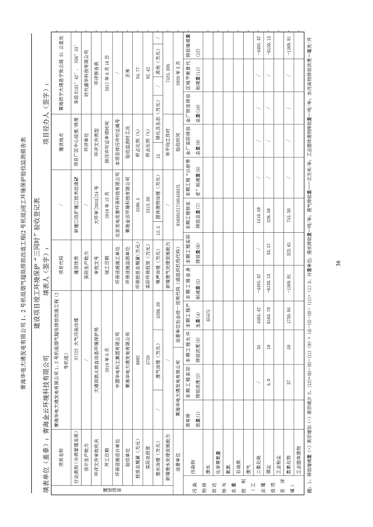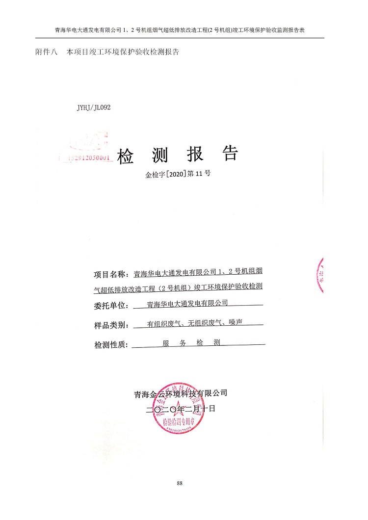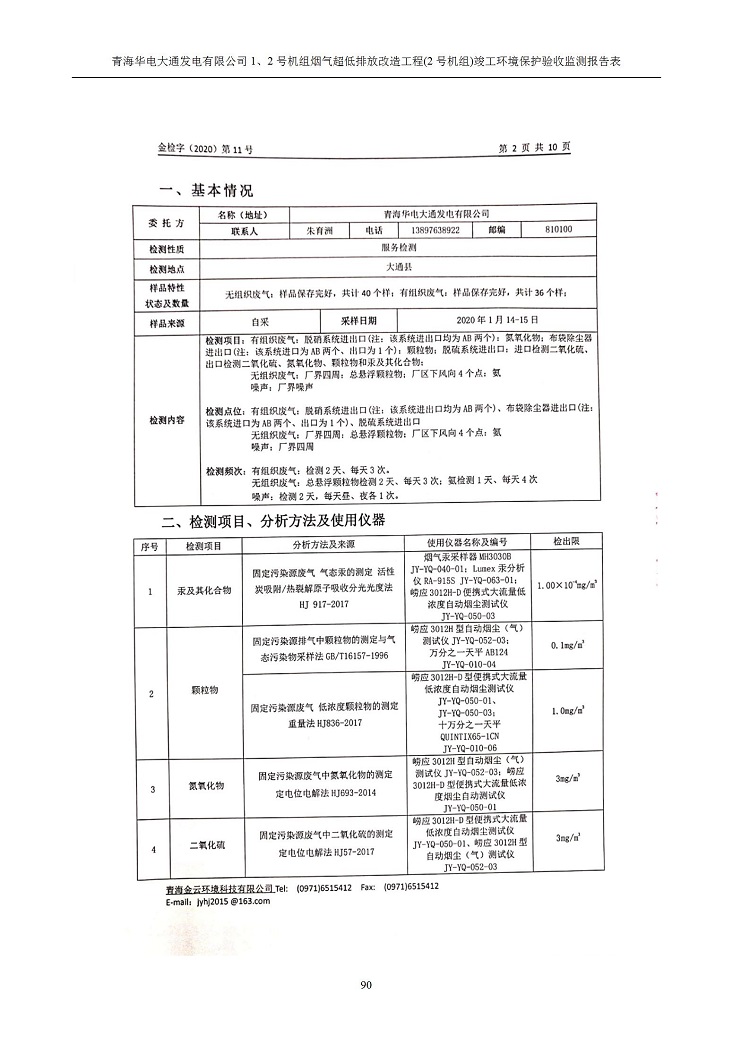 青海華電大通發(fā)電有限公司1、2號機組煙氣超低排放改造工程(2號機組) 竣工環(huán)境保護驗收監(jiān)測報告表公示發(fā)布日期:(2020-4-29) 點擊次數(shù):2456 |