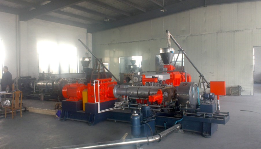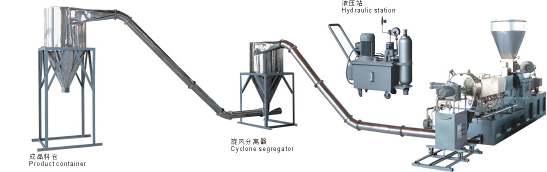 該設(shè)備可由雙螺桿擠出機實現(xiàn)對物料的剪切、混煉, 由單螺桿擠出機完成擠出、造粒??茖W